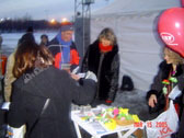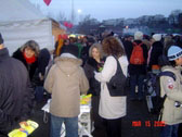 即使天气很冷,仍有许多人快乐的取走了材料。法轮功学员在傍晚短短的数小时之内就分送了3000份以上的简介。来自伊朗的学员参加了这次活动,并且以波斯语向参加活动的同胞说明法轮功改善身心的莫大功效。