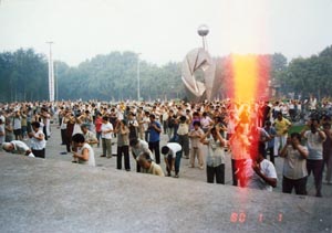 (二)这是河北省邯郸市大法弟子1998年夏在博物馆广场举行大型洪法活动时拍的一张照片。记得当时有人叫道:“看,大法轮”,当时由带照相机的组织者拍下了这张照片,其右下角处功柱清晰可见,唯一遗憾的是没有拍到法轮。