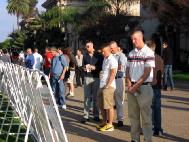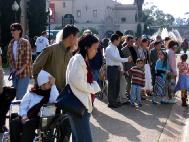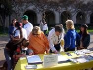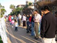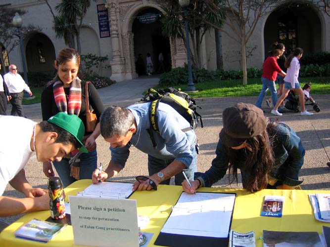 路过的人们纷纷停下脚步观看图片展,了解真象。他们不仅自己签名支持制止迫害,还叫他们的朋友,家人都来签名支持。