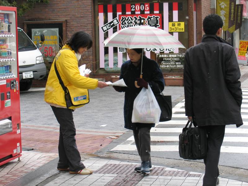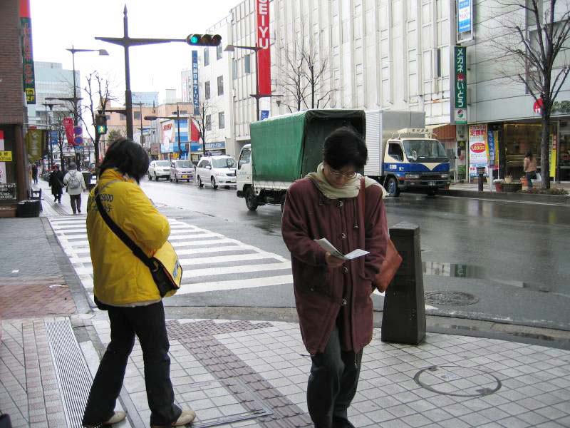 通过不断的讲真象,当地警察知道法轮功学员向来都是和平呼吁停止迫害,因而活动申请许可很顺利。那几天负责这事的担当还多次给学员打电话,问(资料)发得怎么样,接的人多吗,有没有人来找麻烦(指中国大使馆),如果有一定要尽快与他联系等等。一位刚从中国过来的老年法轮功学员知道这事后,感叹说:咱中国的警察黑白不分的抓打好人,日本的警察怎么这么好呢?