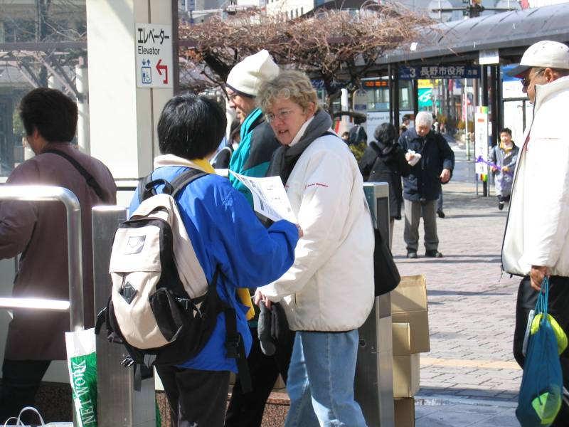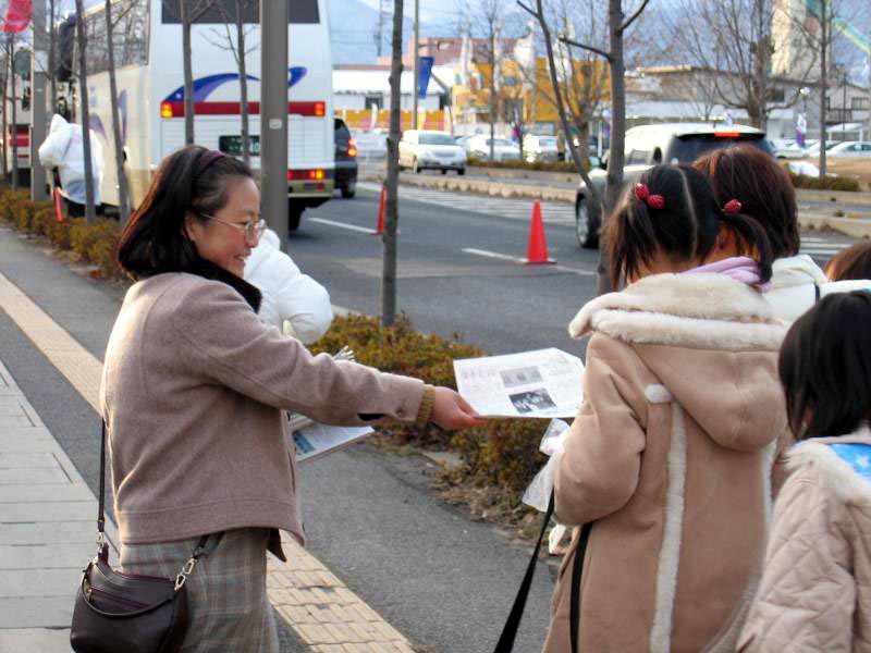 开幕式于傍晚在市郊的一个体育馆举行。当天JR长野站附近行人特别多,法轮功学员们就分散在站前发报纸,大部分人都接真象资料。大家感到形势变化很快,人们越来越容易接受真象了。以前,日本人很怕看到揭露残酷迫害的照片,即使看了好像也不敢往下细看。可是这次好多人拿了资料边走边看,还有的又特意跑回来问:“是真的吗?!”学员就解释这些酷刑图片,并说明这其实只是小小的一部分,中国法轮功学员受迫害的实际情况比这还要严重。对方很吃惊,他们大概没想到,在21世纪的今天他们的邻国当权者竟是那么野蛮和没有人性。