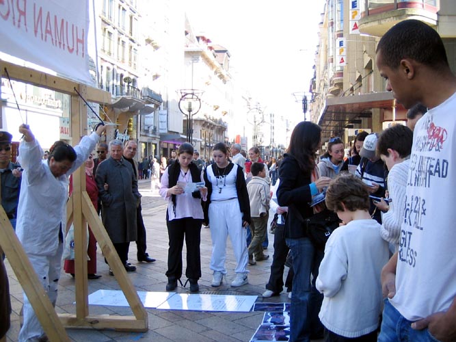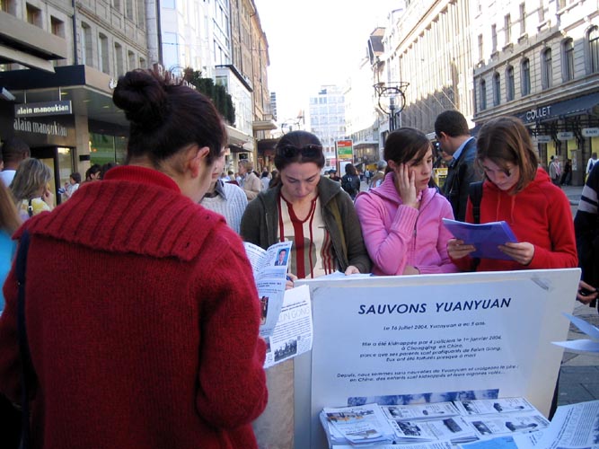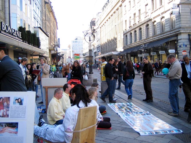 【明慧网2005年3月28日】联合国人权会议期间,瑞士法轮功学员走上日内瓦街头,每周举行反