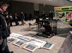 一个中国人从我们跟前来来回回的过,目光却总是不离我们的信息展位。他离我们越来越近,最后索性停下来,读起我们的展板和介绍来。他逗留了很久,从他不停的来回走动能看出他内心的触动。最后他接受了我们的真象小册子和VCD.