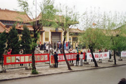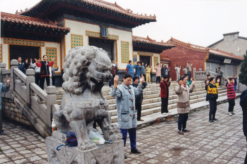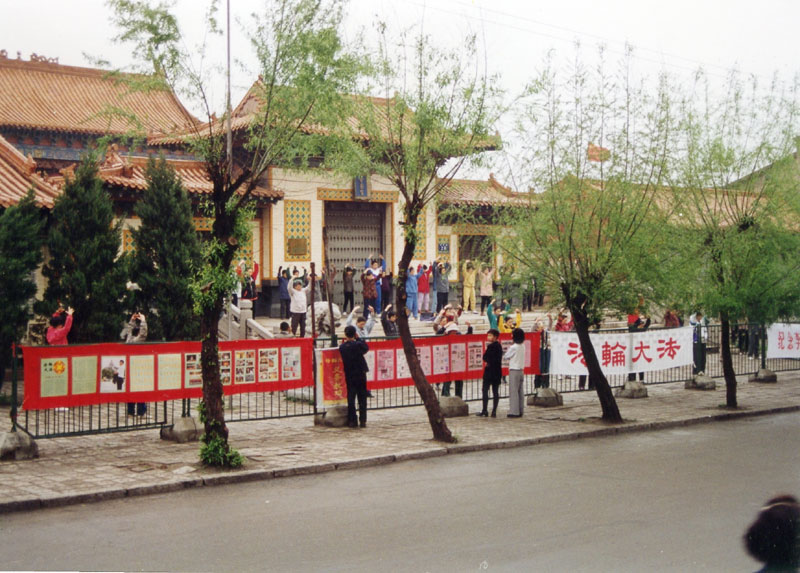 图片:98年大法弟子在辽宁凌源市政府门前集体炼功