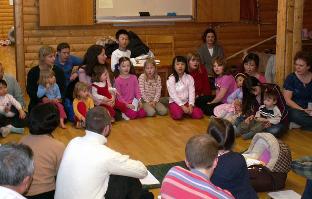 很多孩子跟随家长也参加了这次活动。早在几天前,他们就已经对此翘首以待了。再次见到瑞典明慧学校的同学和小朋友们,他们感到兴奋。一位带着两个孩子来的母亲对大家说:“这两个孩子一直热切期待着我们这次复活节的聚会。他们在这里与其他孩子一起很开心。由于我们都是修炼‘真、善、忍’的大法弟子,所以这个场很祥和。孩子们在这个场中受益匪浅。”
