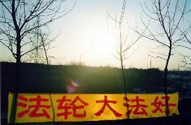 “十一”大陆某葡萄园里飘扬的大法条幅(图)
