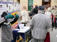 学员们发送了数千份法轮功真象传单。许多市民停下来与学员交谈并对反迫害表示支持。很多人还在呼吁书上签名呼吁停止这场迫害。一些人表示他们难以理解竟会发生这样的迫害。他们说,“如此一个大国的政府怎么竟压制根植于自己民族文化和传统的功法呢?”“人们炼功后,身体更健康了呀,政府只会从中获益。我无法理解他们为什么要迫害法轮功。只有邪恶才会这么干!”