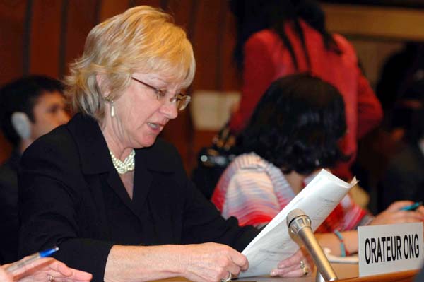 国际教育发展组织的凯伦•派克律师在历次的联合国人权会议期间均发言指责中共对人权的践踏。这次她在发言中说:“国家或国家支持的恐怖主义造成的浩劫远远超过恐怖组织造成的灾难。如何制止国家或国家支持的恐怖主义仍然是国际社会面临的一个主要课题。”