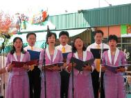他们演出的“唐装表演”和“琵琶舞”等优美动人;来自密特岗的三位西人学员为大家演唱了他们自己编写的歌曲,包括 “Zhen-Shan-Ren(真善忍)”, “Universal Law(宇宙大法)”, “Why are you killing your own good people?(为何残害良知?)”等八首歌。歌中他们向人们介绍宇宙大法“真善忍”及修炼法轮大法给他们带来的身心健康及平和美好的生活。同时,他们也在歌声中揭露中共江氏集团对法轮功的迫害。