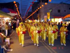 后记:苗栗成立腰鼓队四个月左右,参与的法轮功学员约八十位,从十岁至七十几岁的学员都有。刚开始时先学基本动作然后各自回去练习,星期假日再集体练习。值得一提的是较年长的法轮功学员对音乐节奏毫无概念,可说是一大考验,其中一位年长的苏先生,基本动作一直做不来,音乐节奏更是抓不到,练得灰头土脸想退出。后来学员透过电话鼓舞,自许比别人花多一倍的时间一定可以勤能补拙,现在他打腰鼓的基本动作是最扎实一位,而且每场他都不缺席,精神真是可嘉!法轮功学员表示,之所以会克服各种困难练习打腰鼓,是希望通过活动让更多人了解法轮大法,并从中受益。