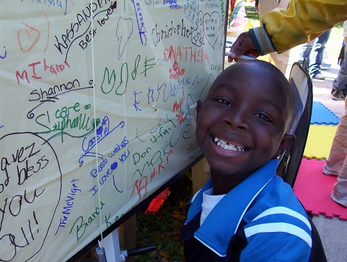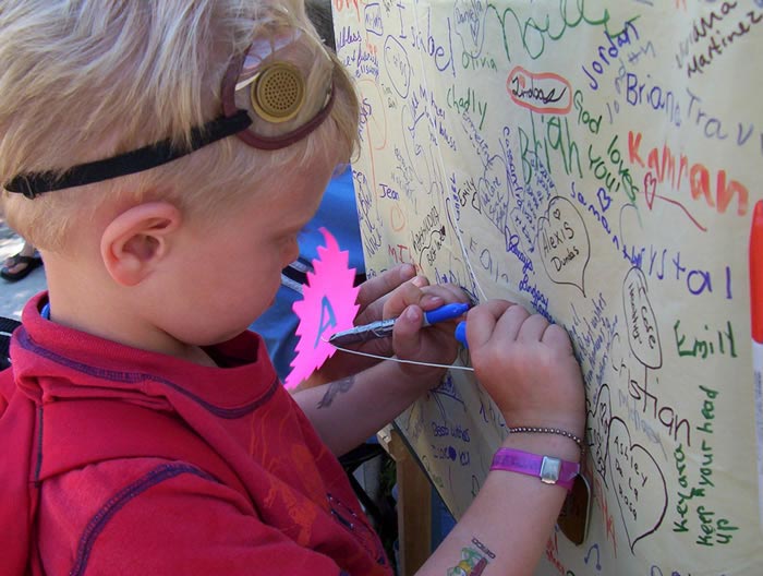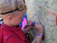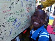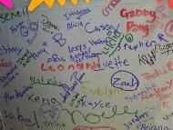 ![]() | ![]() 海报上布满了孩子们的签名 |