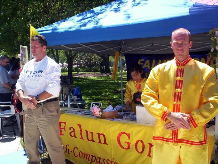 色彩缤纷的莲花,和缓的炼功音乐,还有祥和的能量场,使法轮功学员的摊位很受欢迎。有一位游人说法轮功摊位是这次节庆会上最热闹的。很多人对学功表示兴趣,还有人当场就开始学了起来,很多小孩想试着打坐。一位女巡警说她会与一些警察们分享这个功法,因为她觉得这个功法能使承受强大压力的警察们获益。另一位电视独立制作人给了法轮功学员们一张名片并希望学员与他联络。