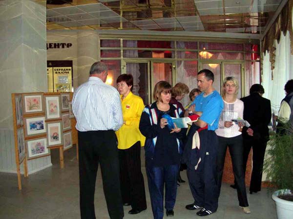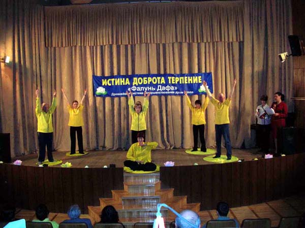 来参观的人们在演出后对法轮功表示了极大的兴趣,纷纷取走了真象材料。