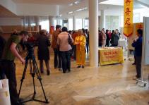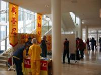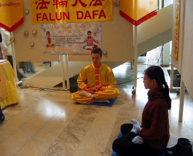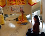 ![]() 法轮功学员的展位 | ![]() 功法演示 |