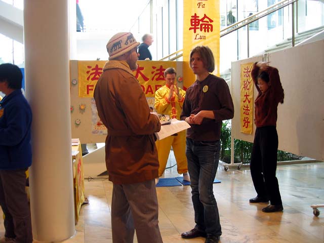 同时我们也为希望学习功法的人们准备了表格,当场就有一些人填上了自己的名字及联系电话,会后我们会立即联系场地、安排时间再次来这里义务教功。我们希望大法能在芬兰更广、更快的传开,更多的芬兰人民能了解大法的美好。