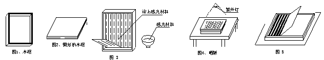 2. 照片或图案(除线条图案外)可直接晒版,先将打印或复印在描图纸上,晒版时,将复印好的图像(黑白)铺在丝网版上,再在图像上面又加上一层没有上感光材料的丝网(300目),再压上玻璃,开始曝光晒版,晒出和的报纸上的图案一样的加网图案。(仅供参考)