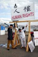 英和林这对年轻的夫妇来自瑞士德语区,在他们演示时,别的法轮功学员帮着照看他们不到一岁的儿子。过去的一年里他们在瑞士各地已经演示过多次法轮功学员在中国遭受酷刑的场景了,让英最难忘的一次是,她刚被“吊”上,她的当时还不到半岁的儿子就开始哭起来了,她的心里象刀绞一样,不是为了她的儿子,因为她知道有人在照看他,而是她想起了一个名叫王丽萱的中国法轮功学员和她的八个月大的儿子孟昊。王丽萱曾为法轮功上访,2000年11月母子俩死于迫害。英身为母亲感同身受,在那次她演示酷刑的时候,她的眼泪止不住的往下流。这是她最难忘的一次经历,她也更能体会到中国国内法轮功学员的处境绝不是艰难二字可以概括的。