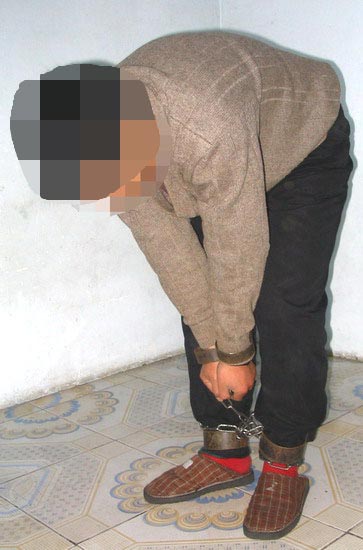 目前吉林市第三看守所恶警,对坚持炼功、绝食抵制迫害的大法学员施以手脚连铐在一起的酷刑,上此酷刑后生活无法自理,极其痛苦。