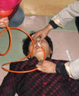![]() 演示图4:戴连体手铐脚镣 | ![]() 演示图5:野蛮插管灌食 |