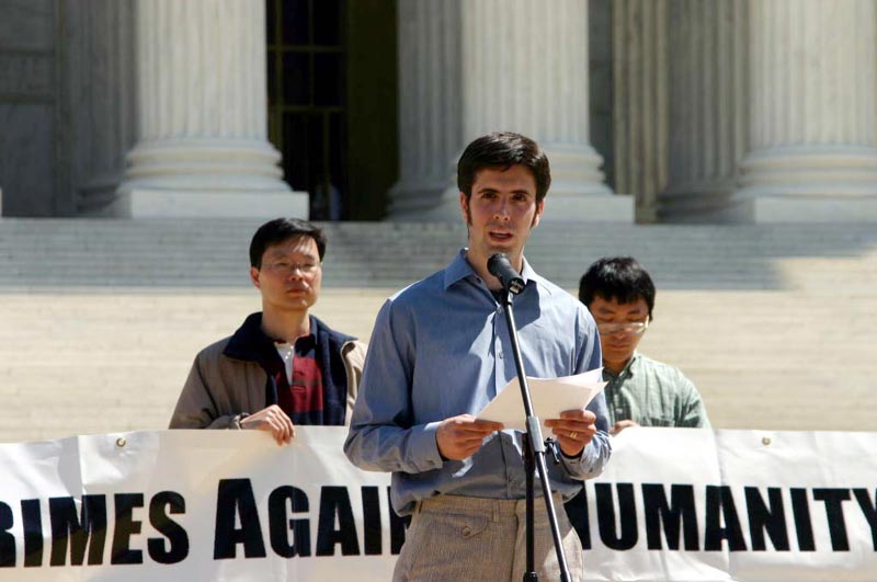 他说,对法轮功的迫害已超越了中国国界。迫于中共的政治与经济压力,一些大跨国公司、主要媒体和西方政府出于经济利益,借口“不了解情况”,选择了对这场史无前例的人权暴行保持低调甚至沉默。