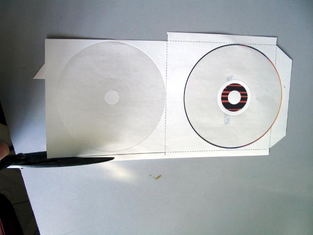 用刚才剪下的两条边条,将不干胶层揭下用于粘光盘袋两侧的封口