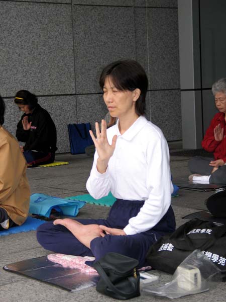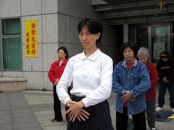 2004年9月1日,我兴奋的参加自家附近的法轮大法九天学法炼功班,第一天上课是拿着拐杖由孩子带着我去上课,坐在沙发上听课;第四天已丢掉拐杖自己去上九天班;第五天可以自己坐到地上;第六天早上自己拿炼功音乐来炼单盘(车祸开刀后两腿根本无法撑开,更别说盘坐),那真是痛之入骨,半小时后,全身湿透,连坐垫也都湿了;九天课程结束后,立刻每天到炼功点炼功,更时时刻刻读法。到了第五个月,我开始以每次增加五分钟的方式炼双盘,每次左腿都很难搬上来,且奇痛无比,但我仍旧坚持,现在我已能双盘四十分钟了。