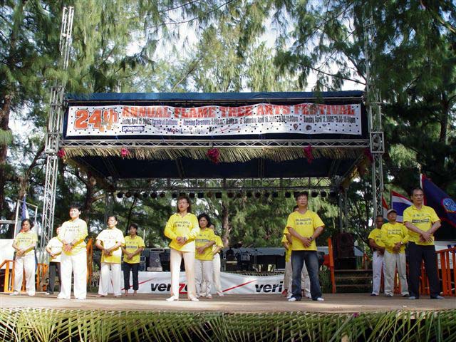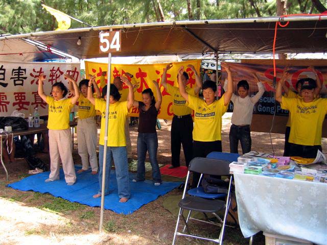 功法演示“真善忍国际美展”吸引人们来了解真象学员们向游客派发法轮功真象资料并向他们介绍法轮功及发生在大陆的真象,并在展位边表演功法。同时举办的“真善忍国际美展”更吸引了很多人来了解真象。大会每天安排法轮功学员表演一场舞蹈和功法演示。学员们的精彩演出,博得全场来自世界各地的游客及当地居民的热烈掌声。