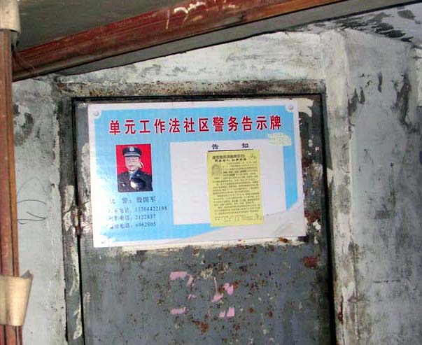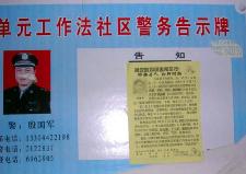 ![]() 图3:在犯罪恶警殷国军的警务告示牌上张贴的不干胶 | ![]() 图4:在犯罪恶警殷国军的警务告示牌上张贴的不干胶 | ![]() 图5:在居民小区内张贴的不干胶 |