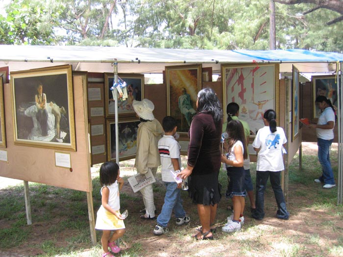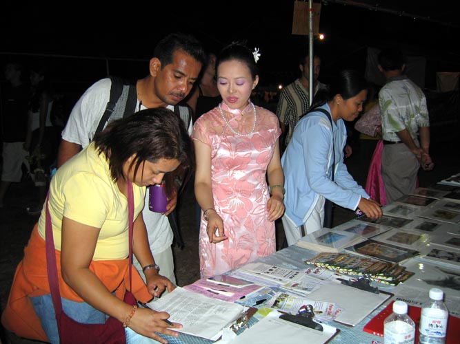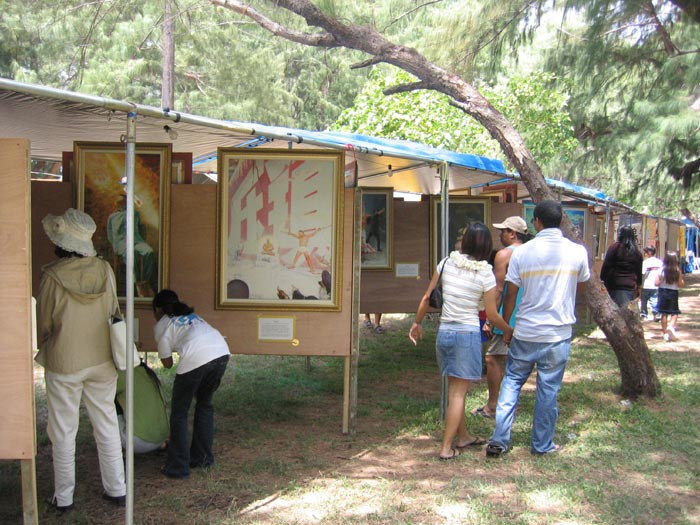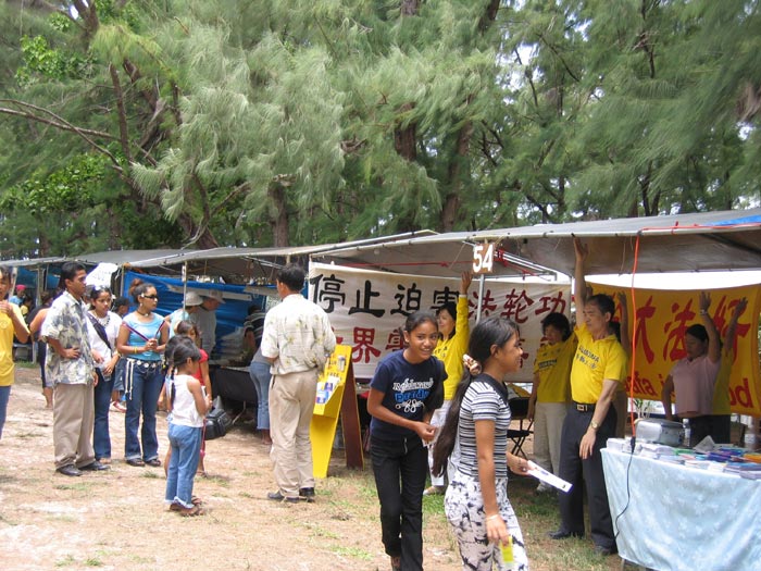 这次的“真、善、忍美展”也是塞班本地艺术协会极力推出的项目之一。早在今年的3月,位于总督山的美展开始,当地的各家媒体就围绕画展与法轮功为主题做了详尽的报道。艺术节上,法轮功学员们演示功法,发放真象资料,还征集支持法轮功的签名。许多人在看到电视、报纸的报道后,特意前来签名。有许多人前来参观画展并了解到了法轮功在中国受到迫害的事实真象。