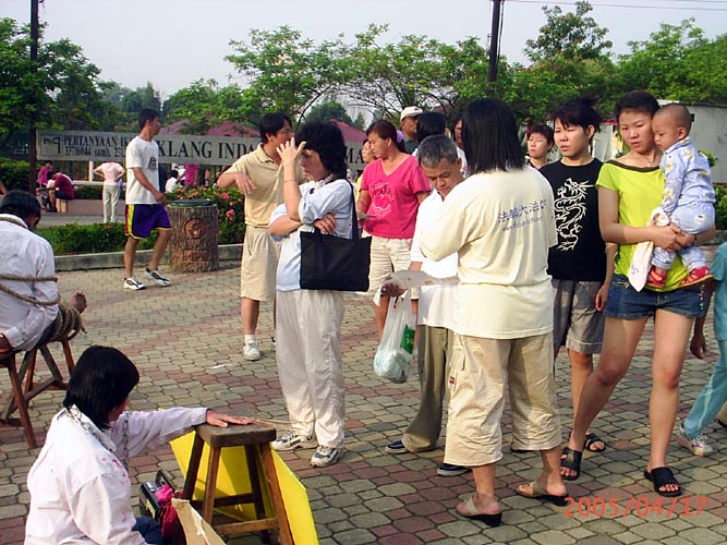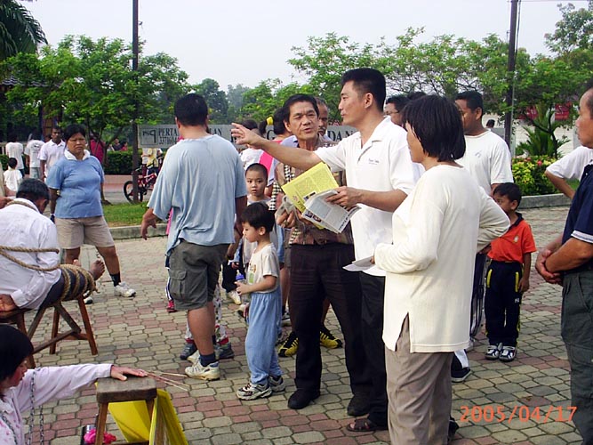【明慧网2005年4月22日】位于马来西亚雪兰莪州吧生市的人民公园,是这一区法轮功学员每周一日集体炼功和讲真象的地方。学员们在这个公园炼功已有近5年的时间,2000年,中共江氏集团刚开始镇压法轮功没多久,由于受到中共的压力及江氏集团散布谎言的影响,那时环境比较险恶。到目前,随着法轮功学员讲真象、反的努力,人们渐渐了解了事实真象,形势已变得比较宽松。