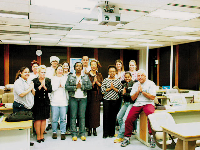 当我们请学生提问时,他们显得非常活跃。有一个学生提出:既然政府不允许,按照法律,你们就不应该在外边炼。中国学员感到惊讶,这似乎与党文化下的中国人思维模式是一样的。这也难怪,这边的移民很多是从古巴这样的共产主义国家来的,同样受着共产党邪文化的影响。还没等学员做解释,课堂上其他学生已经急不可待与这位学生争辩起来,他们的共识就是信仰自由是人最基本的权利,政府为什么要剥夺。最后还是Mary Mckinney女士让大家安定下来,有理有据的回答了这个问题:你知道中国是什么样的国家?是共产党统治的国家。而共产党是不允许人们有信仰自由的,他们是按照他们自己的利益和兴趣来制定法律的;而你认为他们坚持炼是错的,是因为你只是遵循那个政府的说法,而没有通过你自己的良知来判断。