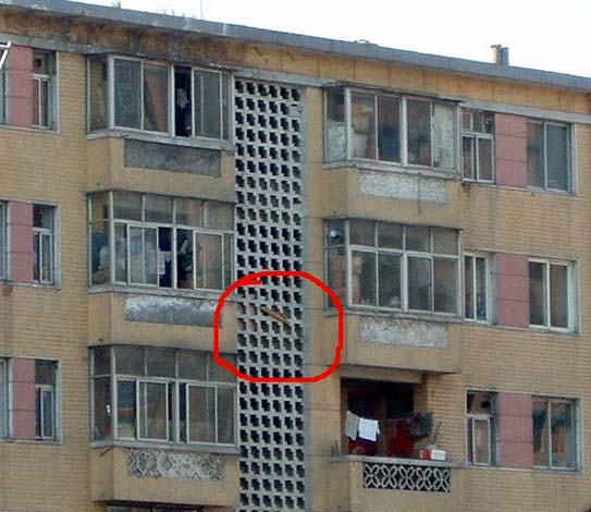 【明慧网2005年4月23日】将制作好的条幅用牛皮纸包好(因牛皮纸和许多楼房的颜色相近,不易被发现):包之前要将条幅下面配好重在卷起,快卷到上边留约半尺,垫上牛皮纸继续卷到上端,用线绳先系好。另用二根一尺左右的尼龙线将二根线头集中到一起(不打结)固定在盛水的小器皿中(或冰箱用的制冰块小盒)冻成冰砣,另外二根线头散开。到达选好的挂条幅的地点后,将条幅事先系好的线绳取下,把冻成冰砣的尼龙绳散开一段系在条幅上挂好,如想让其加速融化,可将包好细盐的方便袋底部扎些小孔覆在冰砣上,这样便完成了挂放条幅。待冰砣融化,线头散开,条幅自动展开。此法春、夏、秋、冬(只要不是太冷)都可作。夏天可将冰砣用一泡沫制成的保温盒携带(夏天冰砣稍大些)。