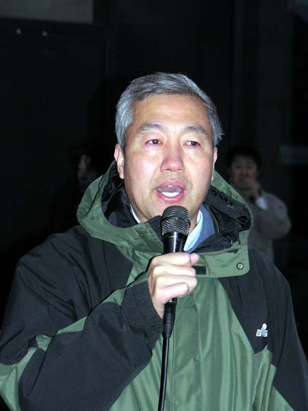 ![]() “民主中国阵线”主席费良勇 | ![]() “中国和平”主席唐柏桥在发言 |