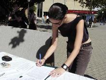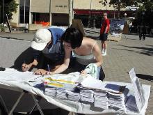 签名支持法轮功学员在堪培拉中领馆前的请愿活动向过往行人讲真象