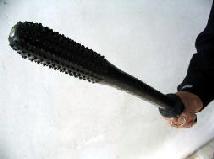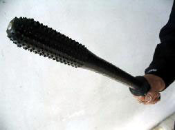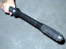 ![]() 图31:恶警毒打侯占海时所用的凶器--“狼牙棒” | ![]() 图32:“狼牙棒”里面灌铅,打人时外表无明显伤痕,但却可严重伤人内脏 |