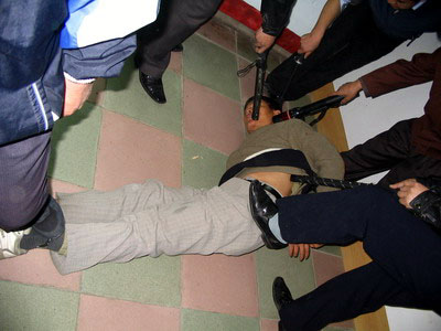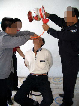![]() 酷刑演示图38:十多名恶警用狼牙棒毒打、电棍电击 | ![]() 酷刑演示图39:十多名恶警用狼牙棒毒打、电棍电击 | ![]() 酷刑演示图40:野蛮灌食 |
