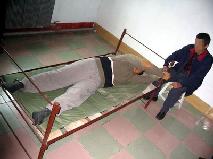 ![]() 酷刑演示图35:毒打、电棍电击 | ![]() 酷刑演示图36:薛保平当时下巴被打烂后,戴手铐上死人床。 | ![]() 酷刑演示图37:薛保平当时下巴被打烂后,戴手铐上死人床。 |