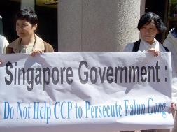 据悉,新加坡法轮功学员黄才华和程吕金因在滨海公园炼功,于2004年5月被控“未经申请非法集会”,并加控“拥有及邮寄未经批准的光碟”等八项罪名。经过近1年的审理,2005年4月27日,新加坡法庭对黄、程两女士作出不公判决,两人分别被判罚款24,000新元和20,000新元。两位学员拒绝接受该判决,表示要上诉,她们于当日晚6点之后被带入樟宜女子监狱,可能被监禁最长24周。