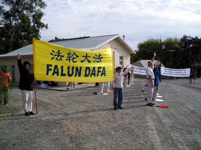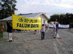 一位当地餐厅的老板,白天就看到学员在小镇上的路旁炼功了。当他在路上再次遇到发资料的学员时,就再也忍不住他的好奇心了,请学员给他讲讲到底是怎么回事。学员告诉他什么是法轮功,过去几年中国法轮功学员所遭受的迫害以及现在这样的迫害已经延伸到了澳洲这样的自由国家,比如澳洲外长在过去三年中由于受到中共政治和经济方面的压力,每个月都签发证书不允许法轮功学员在驻澳洲的中国大使馆外面举任何的横幅和标语。