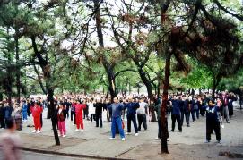 历史图片:1998年北京两个千人炼功点的晨炼场面