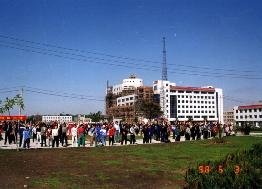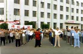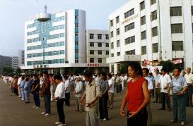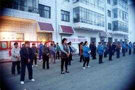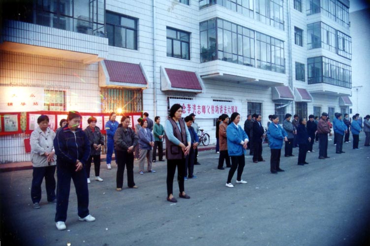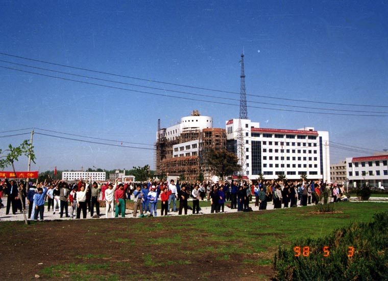 图片:98年大法弟子在辽宁凌源市政府门前集体炼功