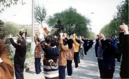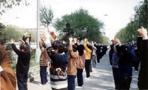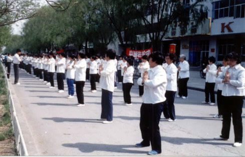 历史图片:法轮功学员大型炼功场面(河北石家庄)(图)