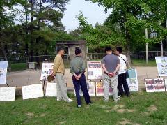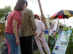 人们了解真象大会期间,法轮功学员们不仅对聚集在展板前的人们讲真象,还到舞台周边、人流涌动的路边去讲。节目间歇,游人们停下脚步,观看揭露中共侵犯法轮功学员人权的图片,并积极为营救高成女而签名,还很关心的拿走了真象资料。带着学生来的老师,白发苍苍的老人,都用心聆听了学员们的说明。三三两两结伴而来的各阶层的人们仔细的观看了学员们的炼功动作,领略法轮功的优雅风姿。