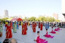 在本次盛会上,法轮大法学员无论走到哪里,总是成为摄影爱好者们拍摄的聚焦点。早在游行队伍出发前,一些摄影爱好者便围前围后的抢拍,有一位上了年岁的女士因抓不着拍摄唐装仕女的最佳时机,索性跟学员商量能否给她个最佳的角度;大法弟子们炼功的场面更是他们平素难得一见的景观,那舒展优美的动作,悠扬悦耳的音乐,祥和慈悲的神态等,似乎给他们以莫大的感染,使他们得到了身心的净化和心灵的愉悦。因此,他们要将这优美与祥和永久的记录保存下来。或许,这一看似普通而单纯的一念,正是他们千百年来所一直固守的发自内心最深处的宿愿的一种表现。