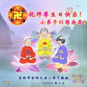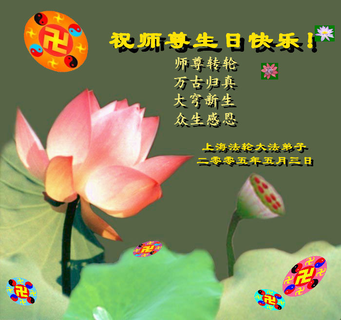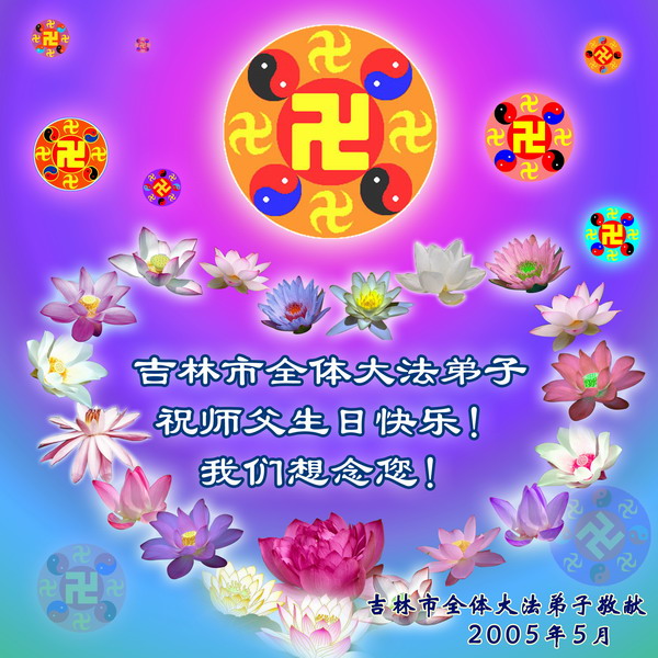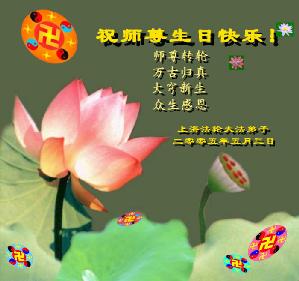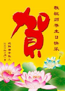 <英文版: http://www.clearwisdom.net/emh/articles/2005/5/14/60765.html>大陆大法弟子恭贺师尊华诞暨法轮大法洪传十三周年