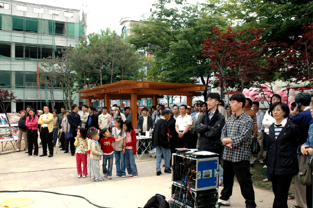 ![]() 观看真象展板的人们 | ![]() 精彩的文艺演出 |