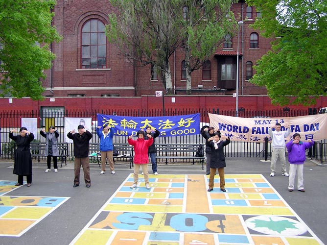 纽约布碌仑8大道华人社区附近的华人炼功点建于97年春季,到今年也有9个年头了。冬寒夏暑不间断,这里的华人已经熟悉了什么是法轮功的功法。正是“果然有缘能悟者,俩俩相继而来,入道得法”(《精進要旨》—悟)。这里有快奔70的老者,也有怀着宝宝的年轻妈妈,有只读过5年书的大妈、大姐,也有电脑专家、在美国拿到博士的学者,有在街上卖水果的,有退休的老人,有在私人诊所工作的,有在政府单位工作的,有在餐馆打工的,也有自己当过老板的。