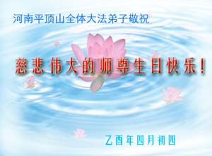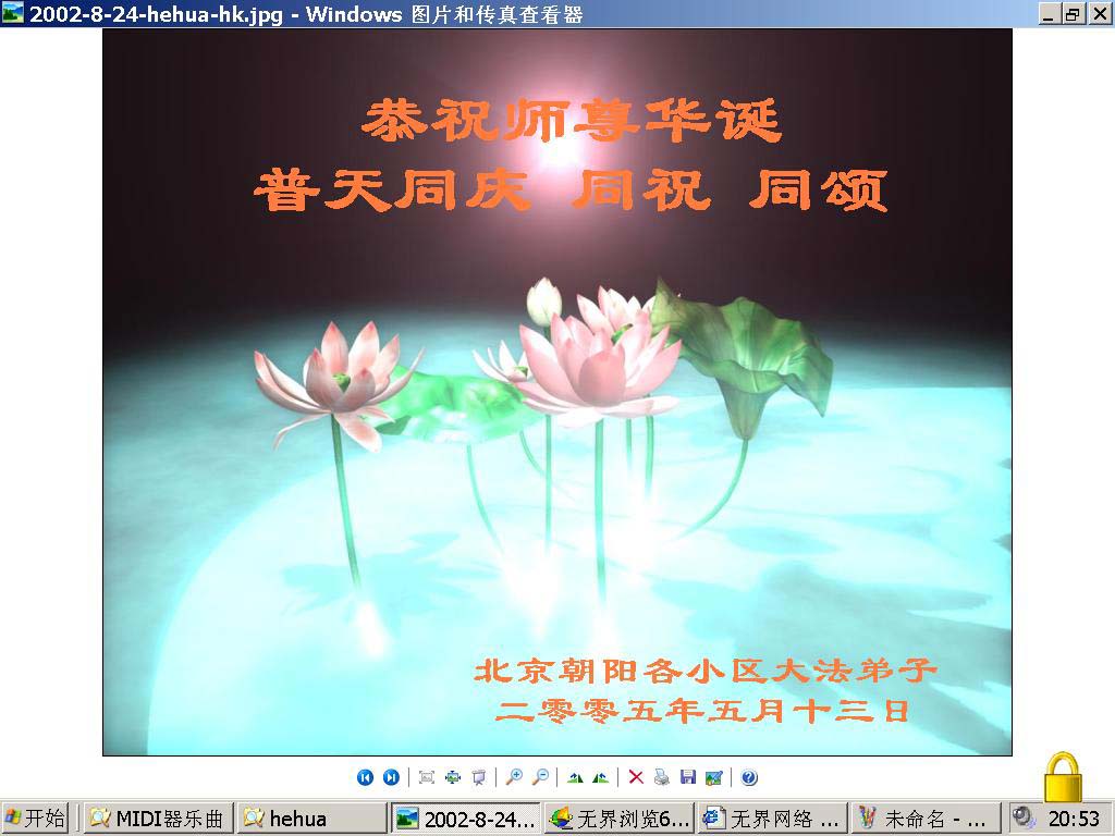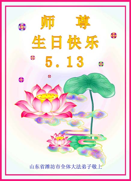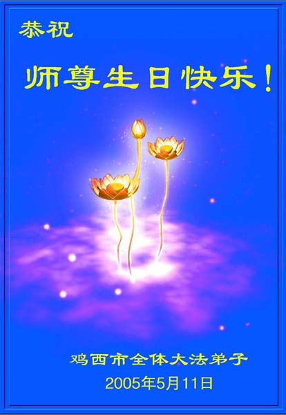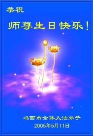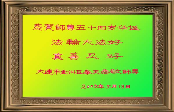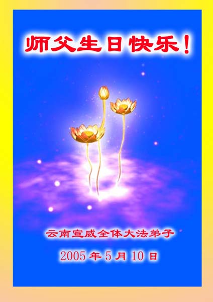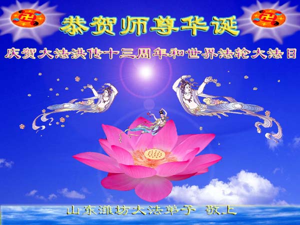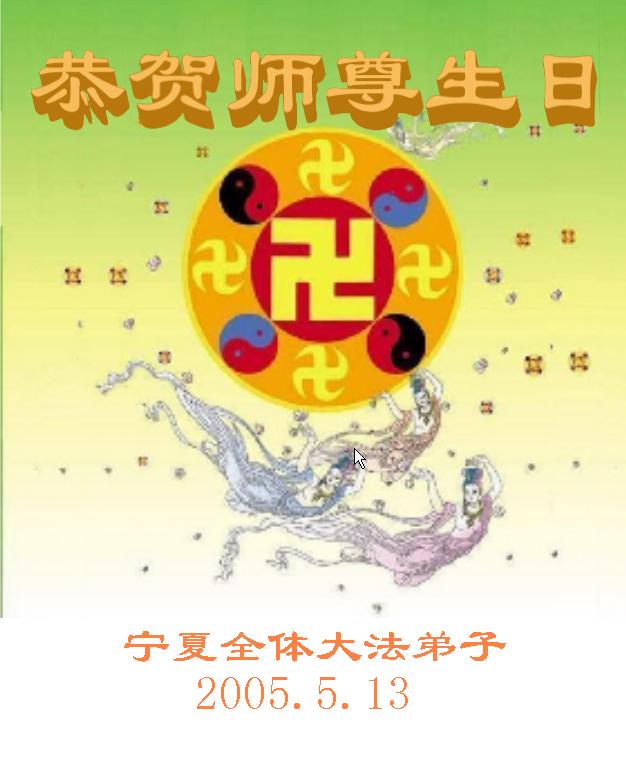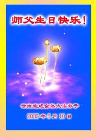 <英文版: http://www.clearwisdom.net/emh/articles/2005/5/14/60765.html>大陆大法弟子恭贺师尊华诞暨法轮大法洪传十三周年(2)