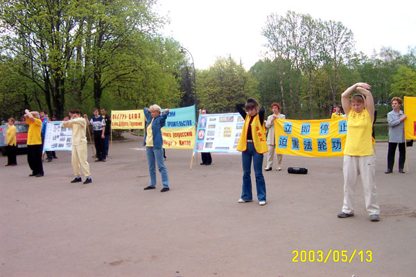 2003年5月13日,庆贺“世界法轮大法日”,同时呼吁停止。2003年5月13日,庆贺“世界法轮大法日”,同时呼吁停止迫害。2003年5月13日,庆贺“世界法轮大法日”,同时呼吁停止迫害。2003年7月在户外炼功、教功2003年8月在户外炼功、洪法、讲真象  2003年7月5日功法表演 |   2003年7月5日,游人阅读真象资料 |   2003年7月5日功法表演 |