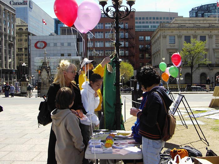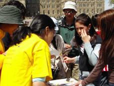 国会山前的游人纷纷观看庆祝活动,了解法轮功真象